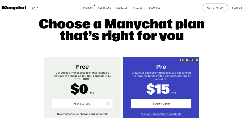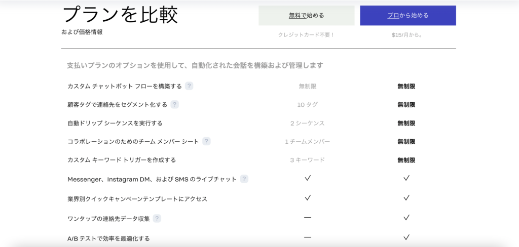 ManyChatの料金プラン